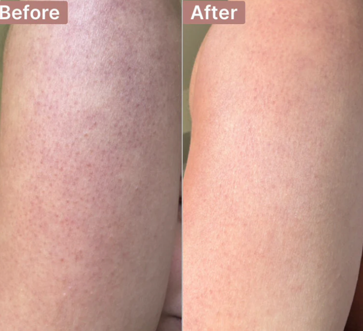 Yes! While our formula was primarily developed for keratosis pilaris, its formulation is equally effective for follicular keratosis that occurs after shaving (commonly known as "strawberry legs"). The salicylic acid component helps prevent ingrown hairs while the anti-inflammatory ingredients reduce post-shaving redness.
