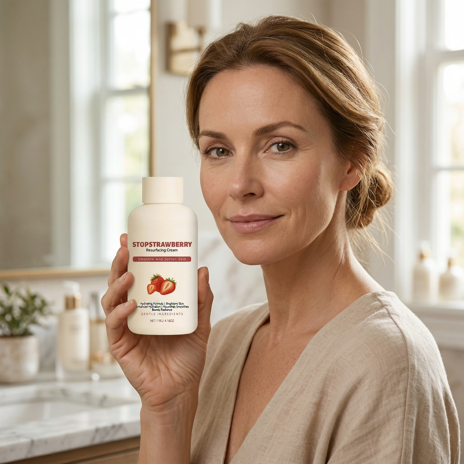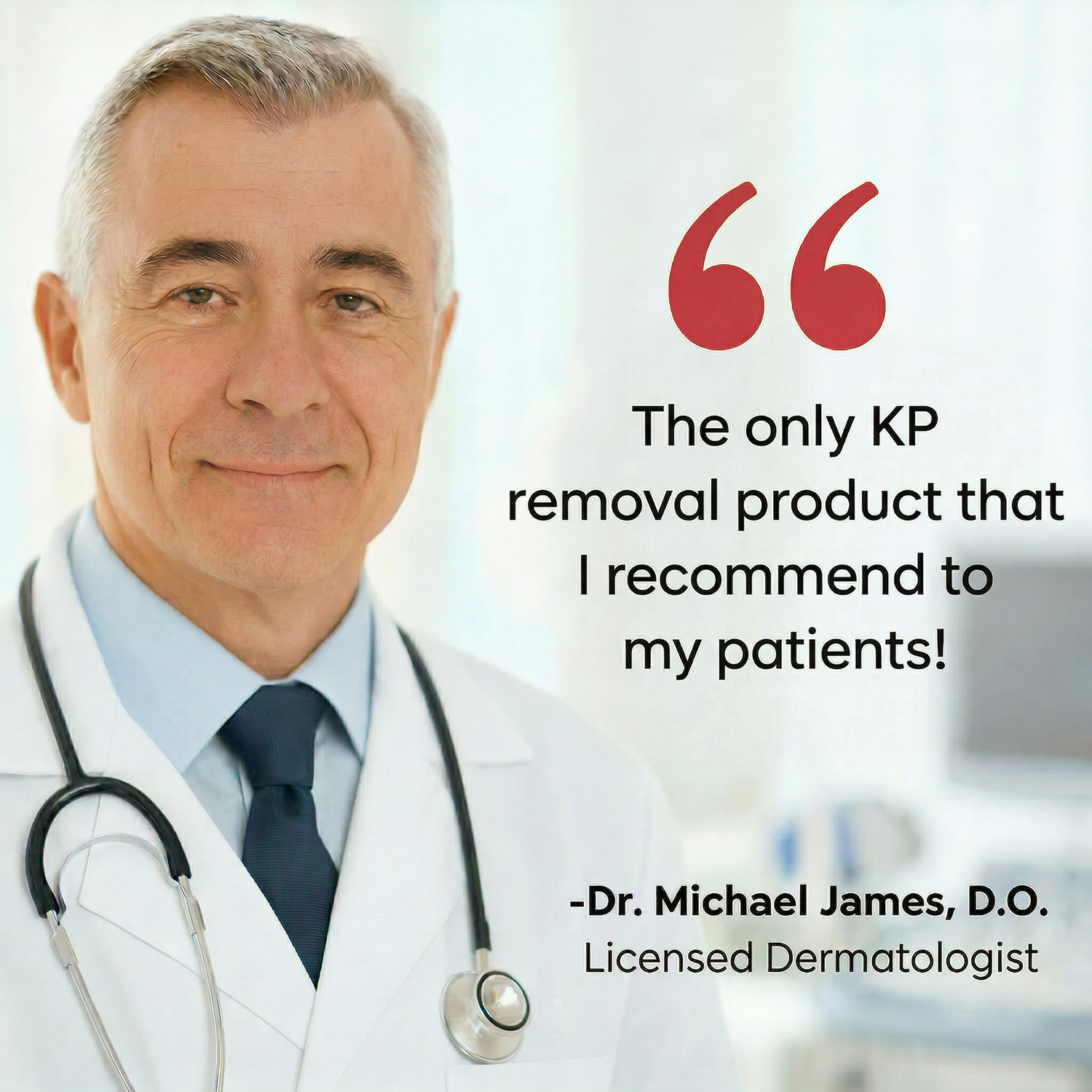 Stopstrawberry is the first dermatologist-formulated treatment specifically designed to address both the bumpy texture AND redness of keratosis pilaris. Our proprietary triple-acid complex targets KP at it's source — the excessive keratin buildup that plugs hair follicles and causes inflammation.